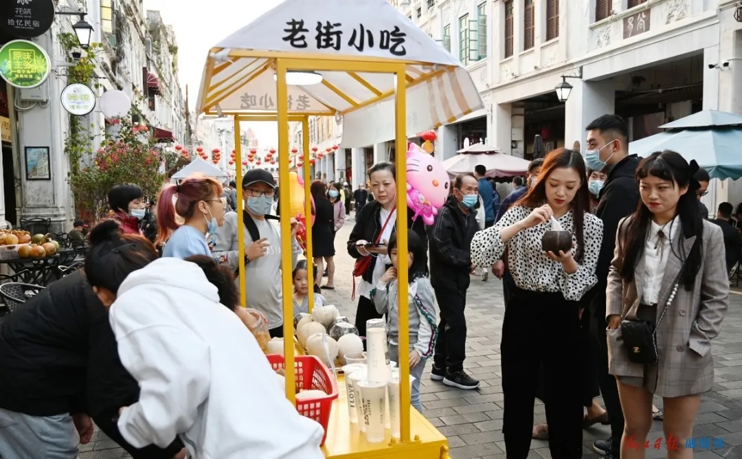 春节假期,海口骑楼老街的传统小吃受到游客喜爱。海口日报记者 张俊其 摄