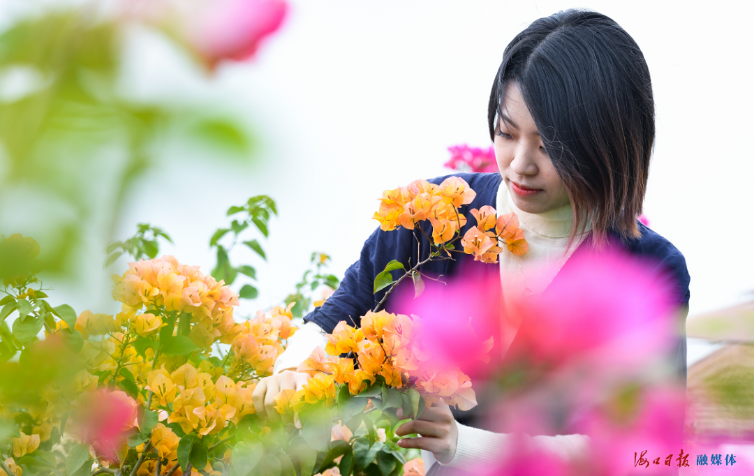 在海口三角梅共享农庄,游客正在观赏五颜六色的三角梅。海口日报记者 康登淋 摄