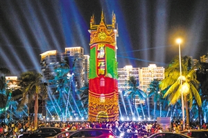 海口钟楼,历史悠久,跨越近百年时光,早已成为海口市内最重要的标志性建筑物之一。“龙华区积极打造夜间休闲娱乐文化,围绕钟楼、骑楼、海口湾片区点亮市民夜生活,从而让市民得到更多幸福感、获得感。”龙华区旅文局局长符文介绍,《光景·钟楼》从大年三十开始以来,到正月十五,累计6万余人次市民游客参观,正月十五当晚达到高潮,四场演出现场观众约5000余人。