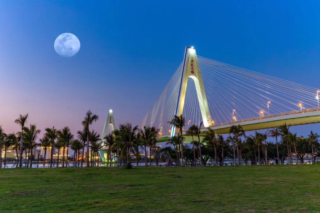 2600多米长的世纪大桥横跨海甸河。入夜后,华灯齐放,流光溢彩,水浮月,美轮美奂好不惬意,还能与街头艺人共歌一曲。