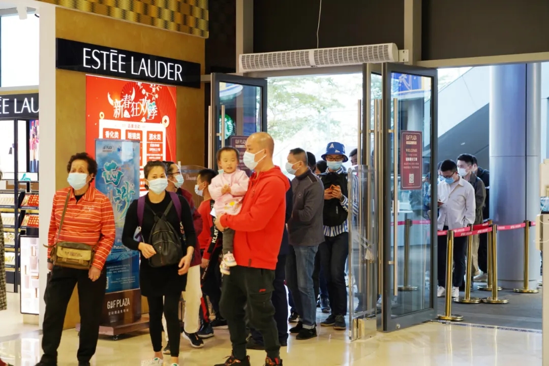 2月16日上午,记者在全球精品(海口)免税城里看到,市民游客在进入免税城前,工作人员均要求配戴好口罩,并通过自动测温检测后才能入店购物。”5折、8折“……在喜庆及浓浓的年味中,香化区、数码区、洋酒区等商品琳琅满目,店内也挤满了游客。