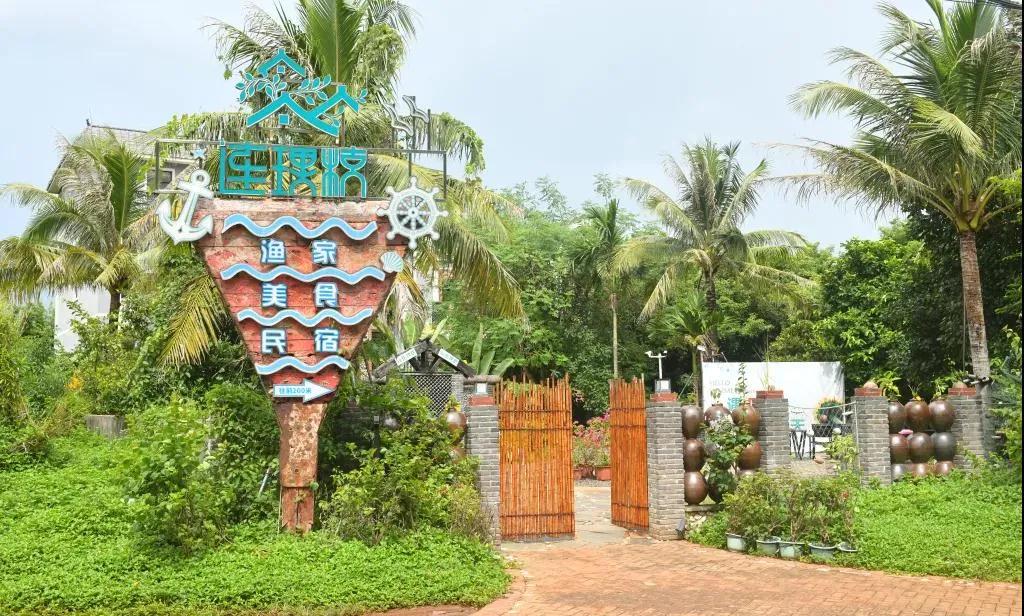 古朴青砖建成的民居,爬藤墙内庭院整洁干净……位于海口演丰镇的连理枝渔家乐民宿,毗邻红树林保护区,从餐饮到住宿,再到电瓶车观光,已经形成了一处独特的乡村景观带。
