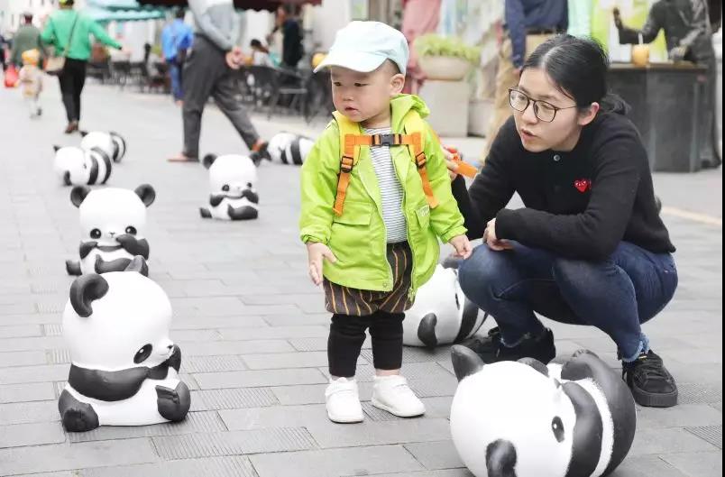 这种活泼与接地气的熊猫快闪形式,吸引了众多市民和游客的驻足和互动,小朋友在活动现场纷纷和熊猫宝宝们合影留念。