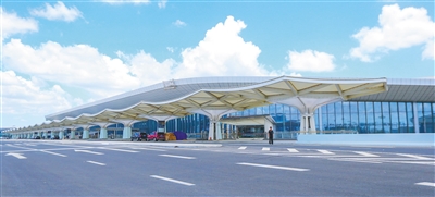 蓝天下的海口美兰国际机场二期T2航站楼十分壮观。