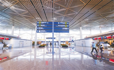 7月6日,海口美兰国际机场二期扩建项目主体工程完工。图为该项目T2航站楼内景。本报记者 张茂 通讯员 黄裕光 图/文