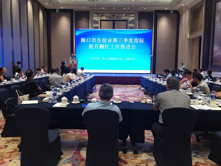 2020年7月30日下午,海口市旅游文体局党组成员、副局长蒋祖华主持召开海口市住宿业第三季度指标提升翻红工作推进会。市旅文局市场监管科、酒店协会、星级饭店、品牌酒店相关负责人共计60余人参加会议。
