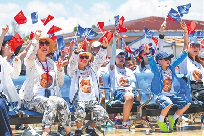 7月23日,游客观看火箭发射。本报记者 袁琛 摄
