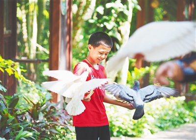 小朋友在户外与小动物亲密接触。本报记者 封烁 摄 袁琛 摄