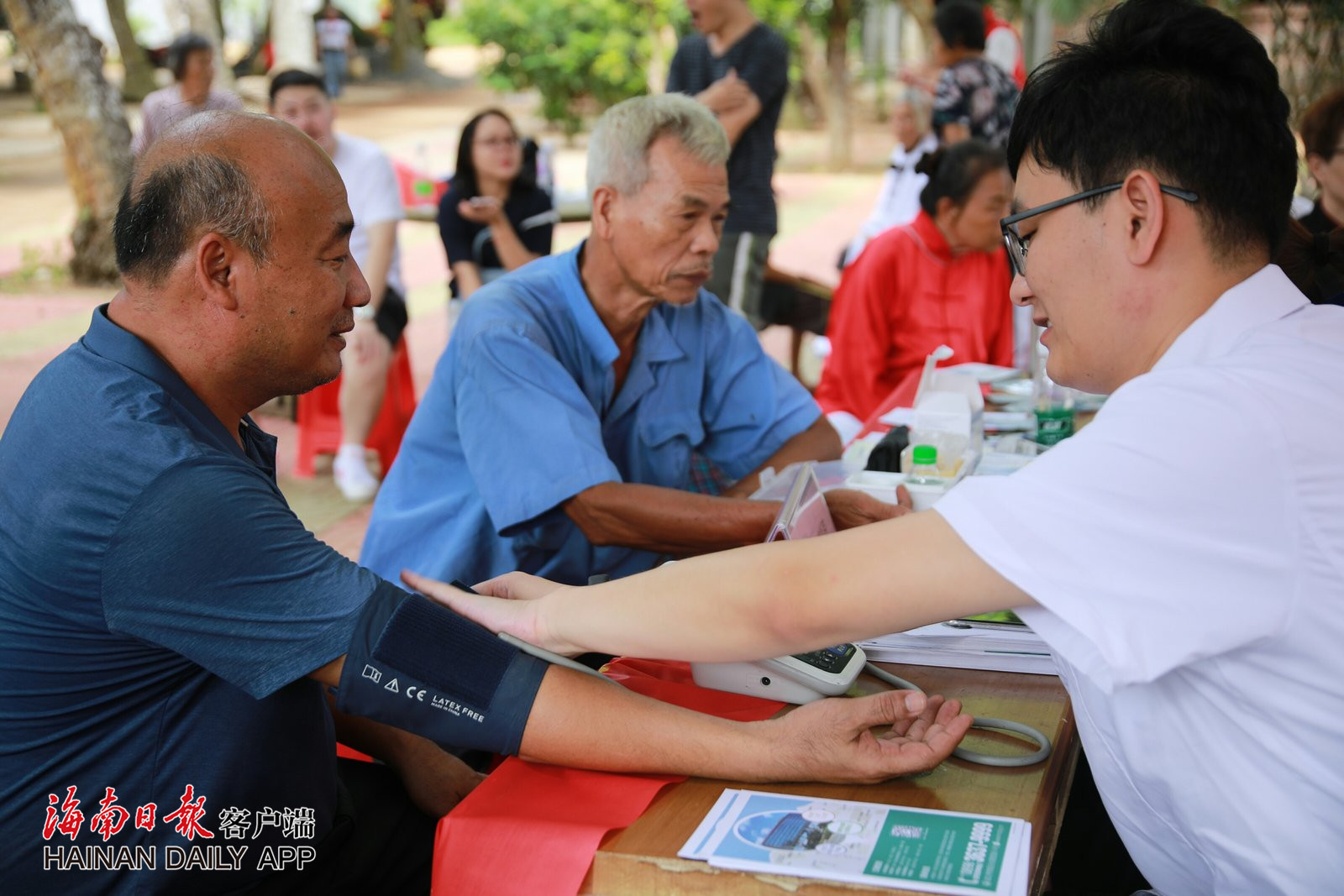 ↑工作人员为村民们义诊。
