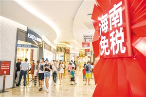 海口日月广场免税店人气旺,众多顾客前来选购商品。 本报记者 王程龙 摄
