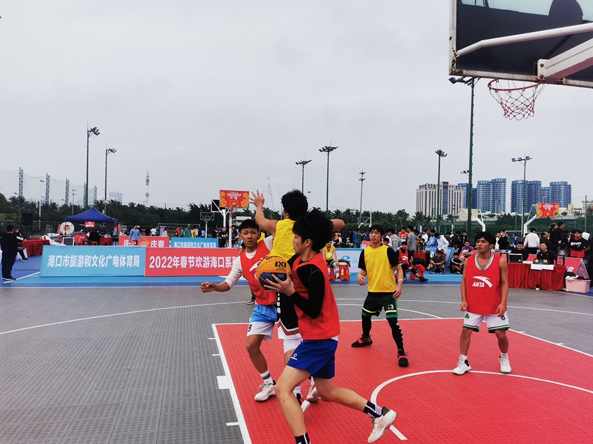 2月4日下午,2022年“欢游海口过大年”体育活动·街头篮球挑战赛(街头庆春)在海口市世纪公园篮球场开打。男子三对三篮球赛共有70支队伍报名参赛、男子技巧赛共有48人和男子三分球赛共有64人报名参加,赛事活动将持续至2月6日。