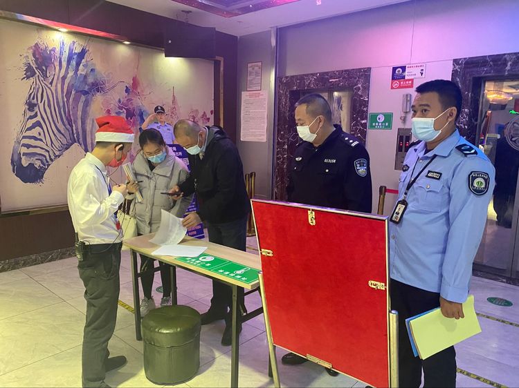 为进一步强化圣诞、元旦节前旅文市场监管工作,营造安全平稳、文明和谐的旅文消费环境,12月23日晚至24日凌晨,市旅文局联合市公安局、市综合执法局、秀英区旅文局、琼山区旅文局对秀英区、琼山区和美兰区内的约夏娱乐会馆、好声音KTV(向荣路店)、魅力100KTV、UK私人订制KTV、甲壳虫KTV(朱云路店)、豪门之星KTV等8家歌舞娱乐场所进行了专项督导检查行动。