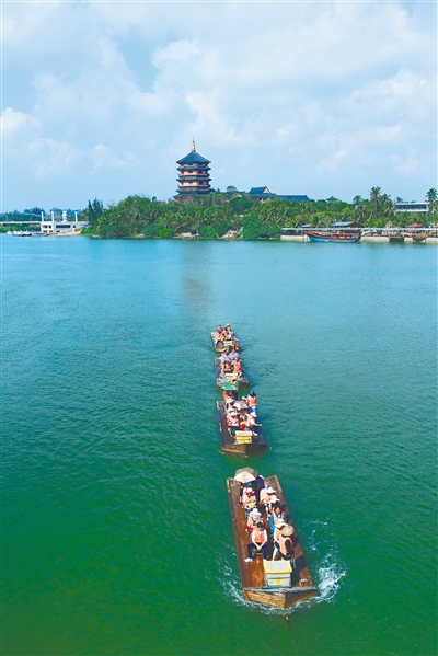 游客在琼海市博鳌镇万泉河上漂流。本报记者 张茂 摄