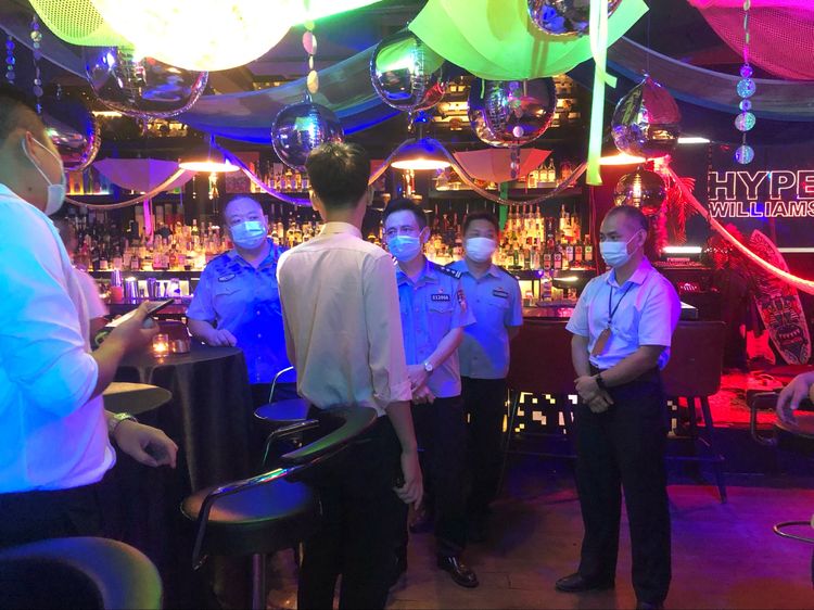 为进一步强化海口旅游文化市场监管工作,营造文明和谐、安全有序的旅文消费环境,8月26日晚至27日凌晨,市旅文局联合市公安局、市市场监管局、市综合执法局等部门对龙华区内的歌舞娱乐场所、涉外经营场所进行了专项督导检查行动。