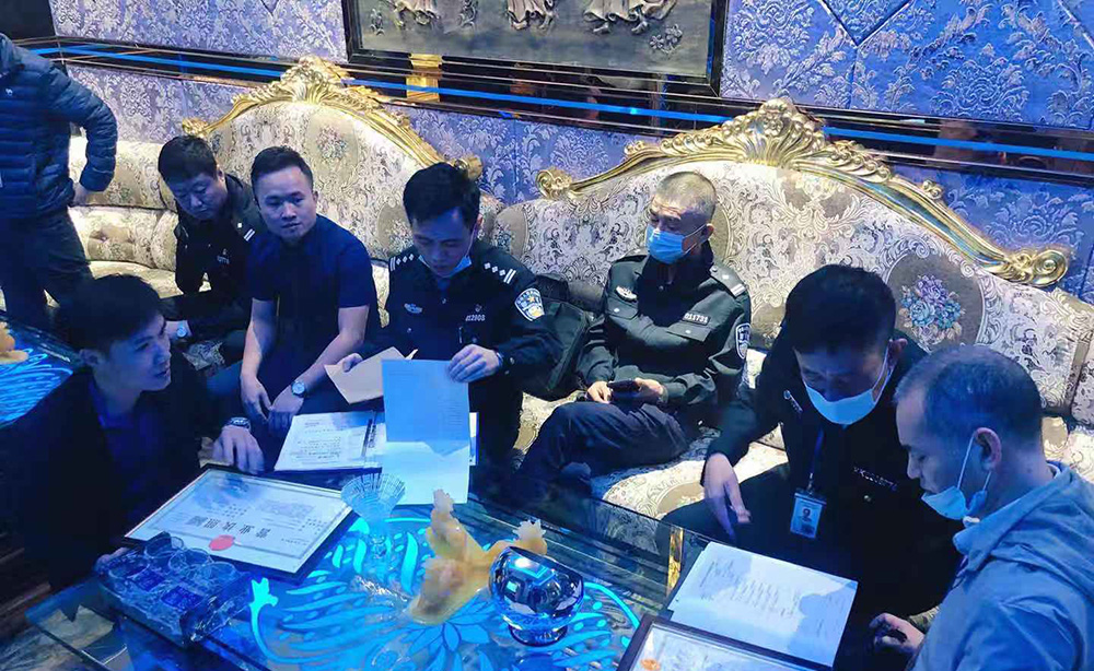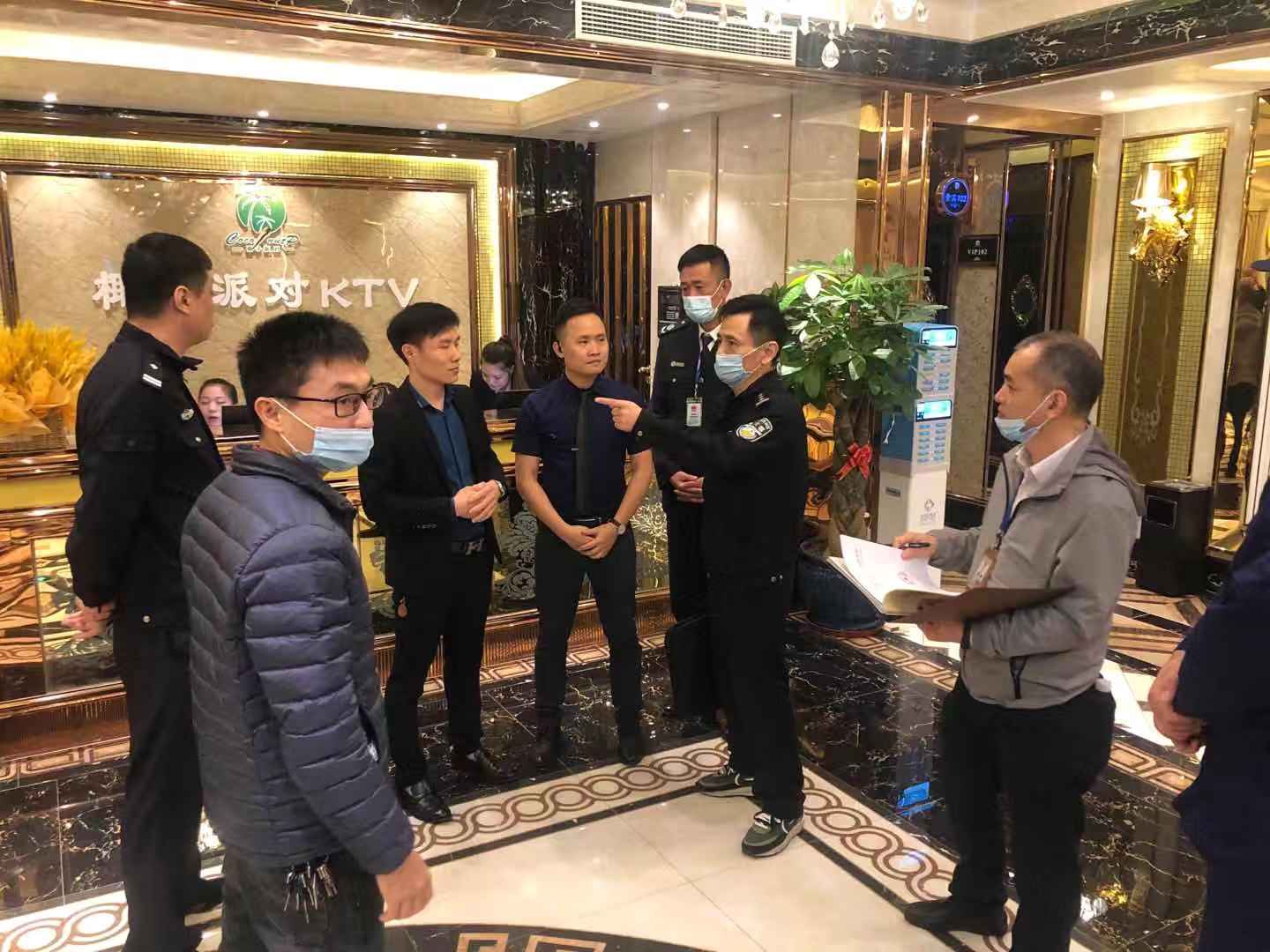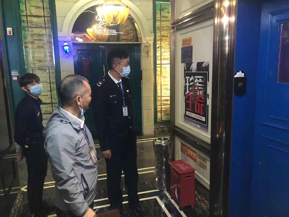 本次检查分为两个小组,针对娱乐场所的疫情防控、安全生产、消防安全、食品安全、禁毒工作、扫黑除恶、经营证照等情况开展督导检查。先后检查了美兰区的宝岛甲壳虫KTV(南宝店),椰子派对KTV、咔麦隆商务KTV和龙华区幕尚·名仕会KTV、K SPACE、K-BOX八音盒量贩式KTV、八声部音乐餐吧、皇浱KTV等8家歌舞娱乐场所。