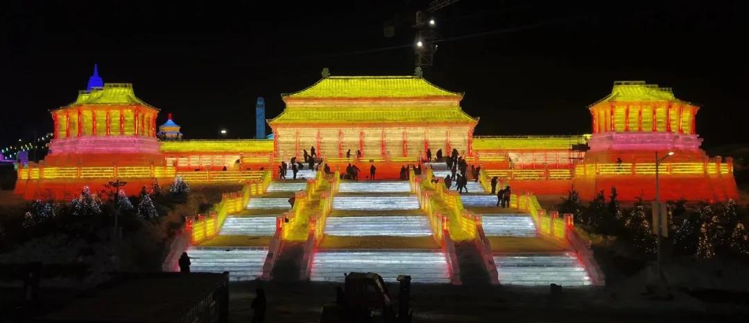 138万平方米;142座独立冰雪雕;有暖屋、雪宫、水晶城堡、婚礼殿堂;激情大滑梯、激情小滑梯、冰上漂移、冰爬犁……