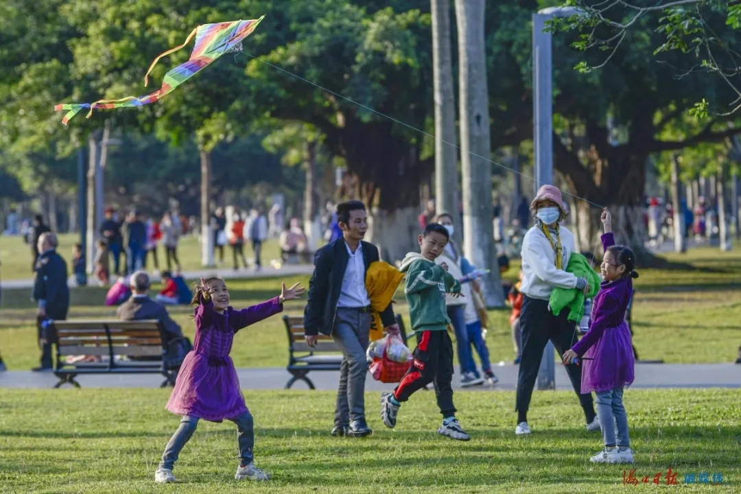 “今天的阳光很舒适,就想着带孩子来万绿园一起放风筝,既陪了孩子,也活动了筋骨。”1月2日上午,市民柳女士说,由于冷空气对海口影响减弱,气温逐渐回升,所以趁着元旦小长假,就带着孩子出来活动活动。