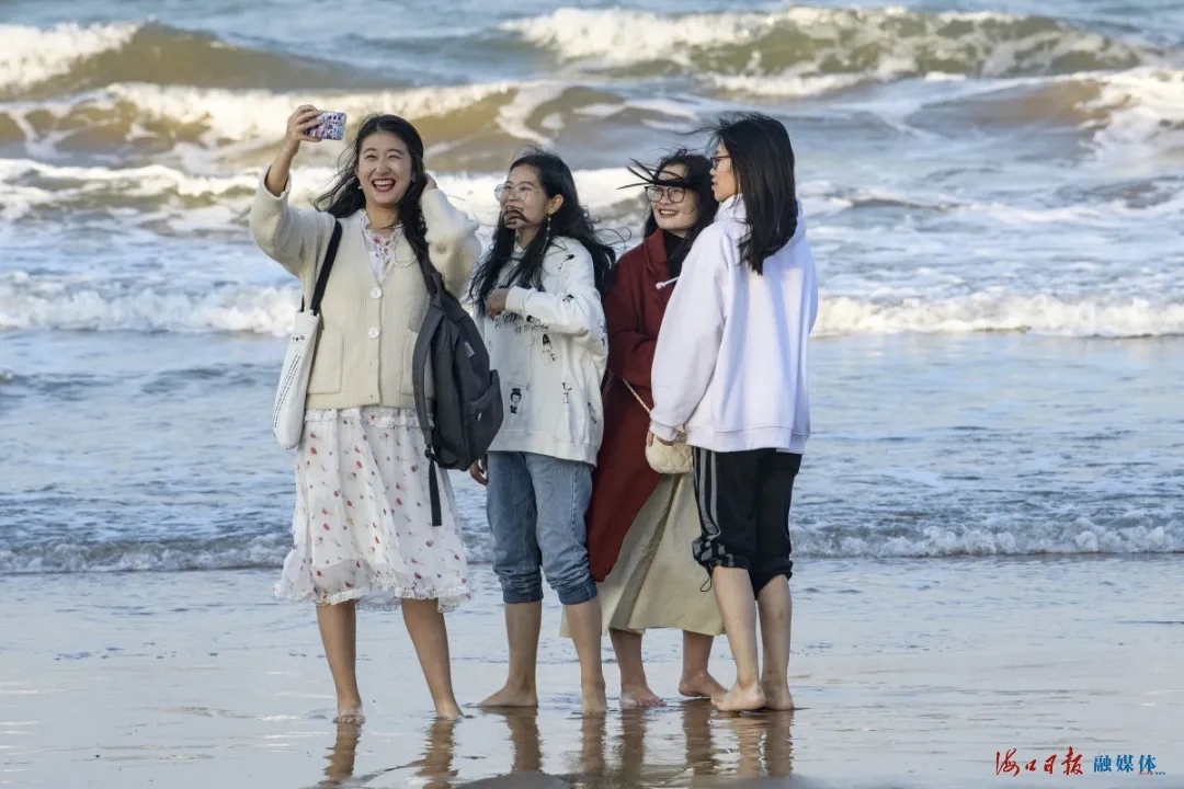 1月2日,假日海滩迎来一拨又一拨的“打卡”游客。海口日报记者 陈长宇 摄