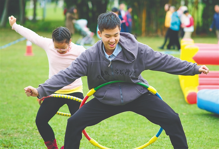 2月4日,游客在万绿园参加趣味螃蟹赛跑游戏。本报记者 封烁 摄