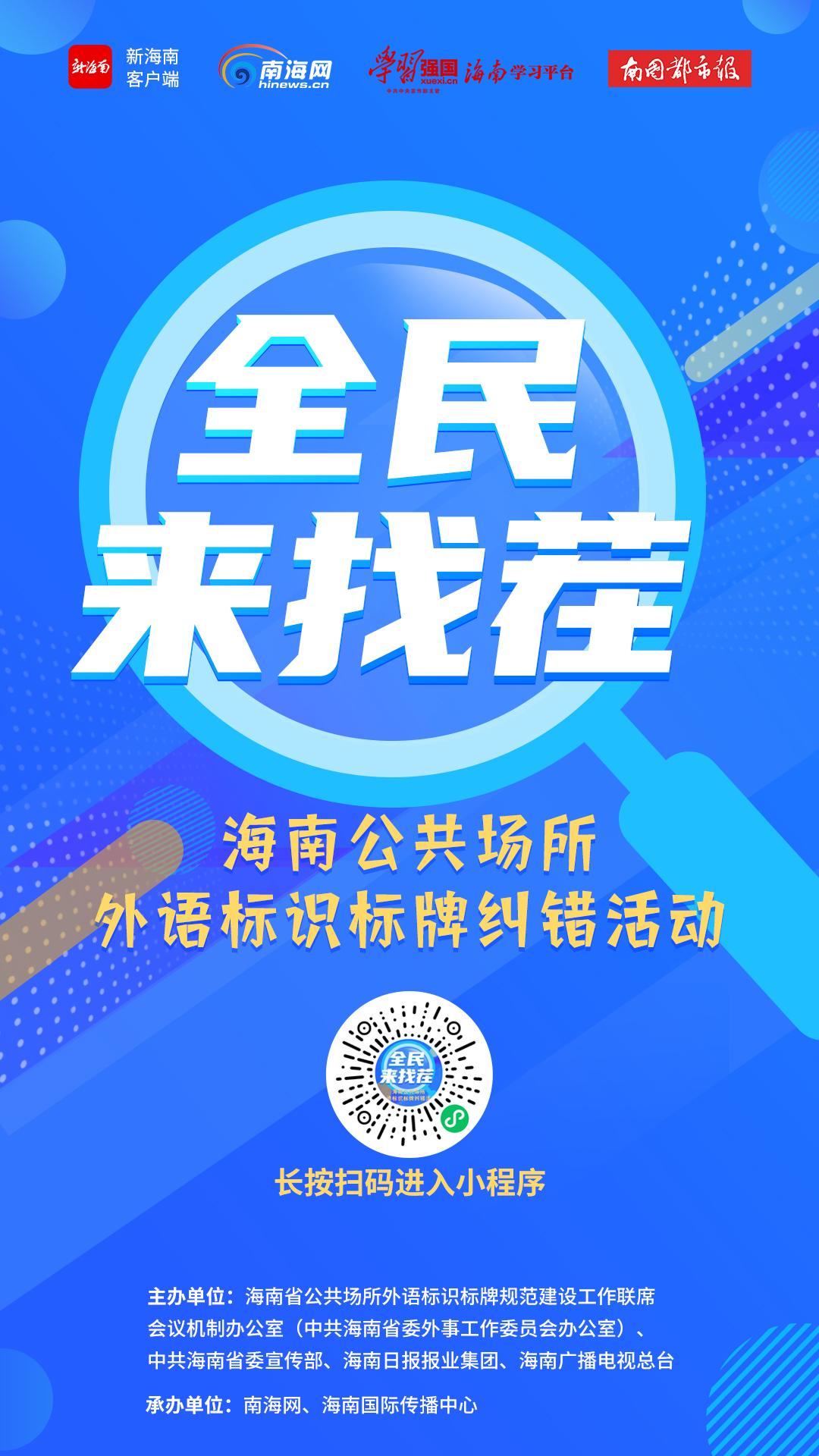 让我们一起积极行动,随手拍一拍,动手纠纠错,完善公共场所外语标识标牌,为海南自贸港擦亮“国际面孔”!