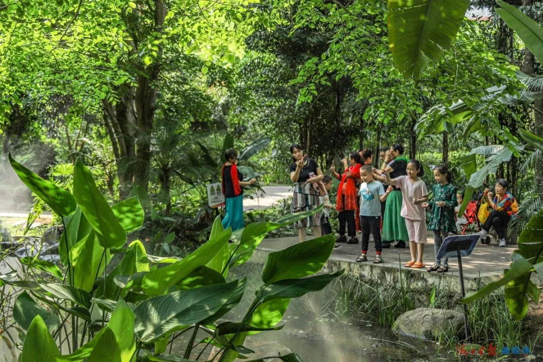 4月3日,海口热带农业科技博览园内绿意盎然,百花争艳,不少市民前来游玩,观察各类热带植物花卉,享受多彩假期。海口日报记者 王程龙 摄