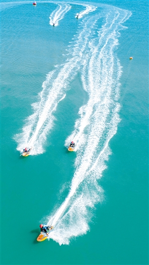在海南自贸港建设大背景下,以环岛自行车赛、环岛国际大帆船赛等精品赛事活动遍地开花的局面正在加快形成。帆船帆板、冲浪、皮划艇、潜水等优势水上项目活动,吸引了众多市民游客特别是青少年的广泛参与,有力刺激了群众对体育旅游的消费需求。今年国庆长假,海口市国家帆船基地公共码头成为海上运动爱好者的首选,许多人争相体验刺激的海上运动。体验过帆船运动的广东游客张之含说,“海口的海上运动很惊险刺激,沙滩边海风凉爽、风景如画,动与静的结合让海口旅游别具特色。水上运动项目价格也比较亲民,自己及家人亲朋还会深入体验海口水上运动的乐趣。”