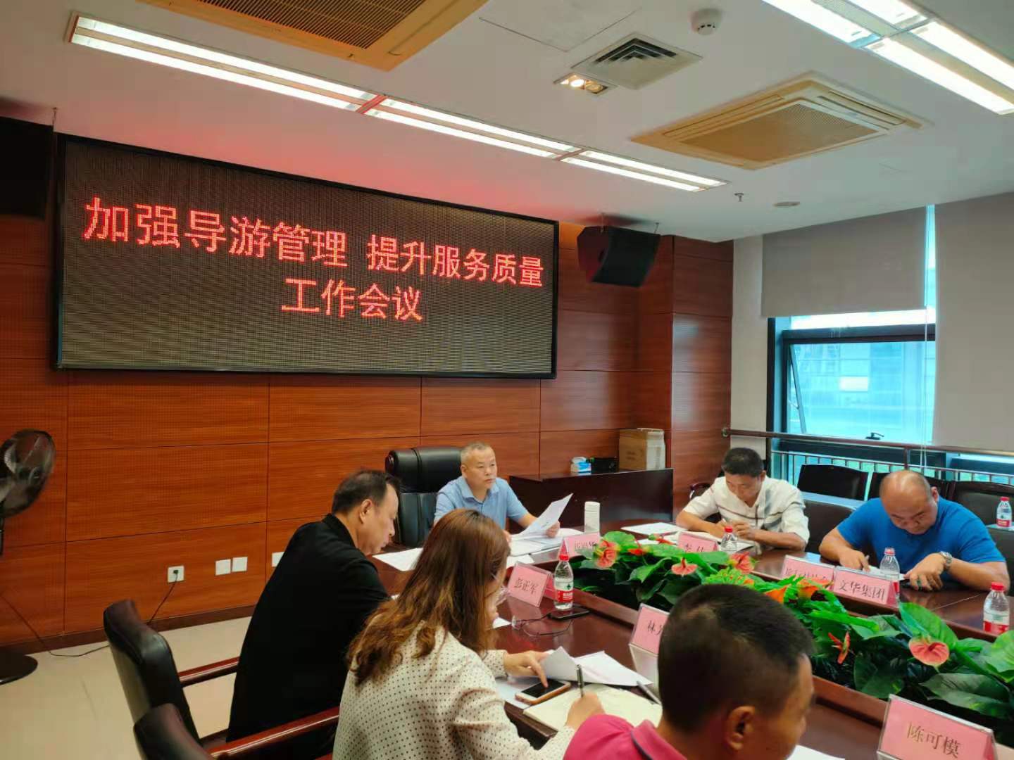 会议由市旅游文体局党组成员、副局长蒋祖华主持,局市场监管科、市旅文投诉中心负责人、海口市天恒集团、锦泰集团、泰德集团、浩海集团、椰旅集团、文华集团、逍遥集团、海南微笑导游服务有限公司、海口永馨导游服务有限公司、海南椰旅导游服务有限公司、海口百顺祥导游服务有限公司、海南和谐之旅导游服务有限公司、导游服务有限公司等单位负责人出席会议。