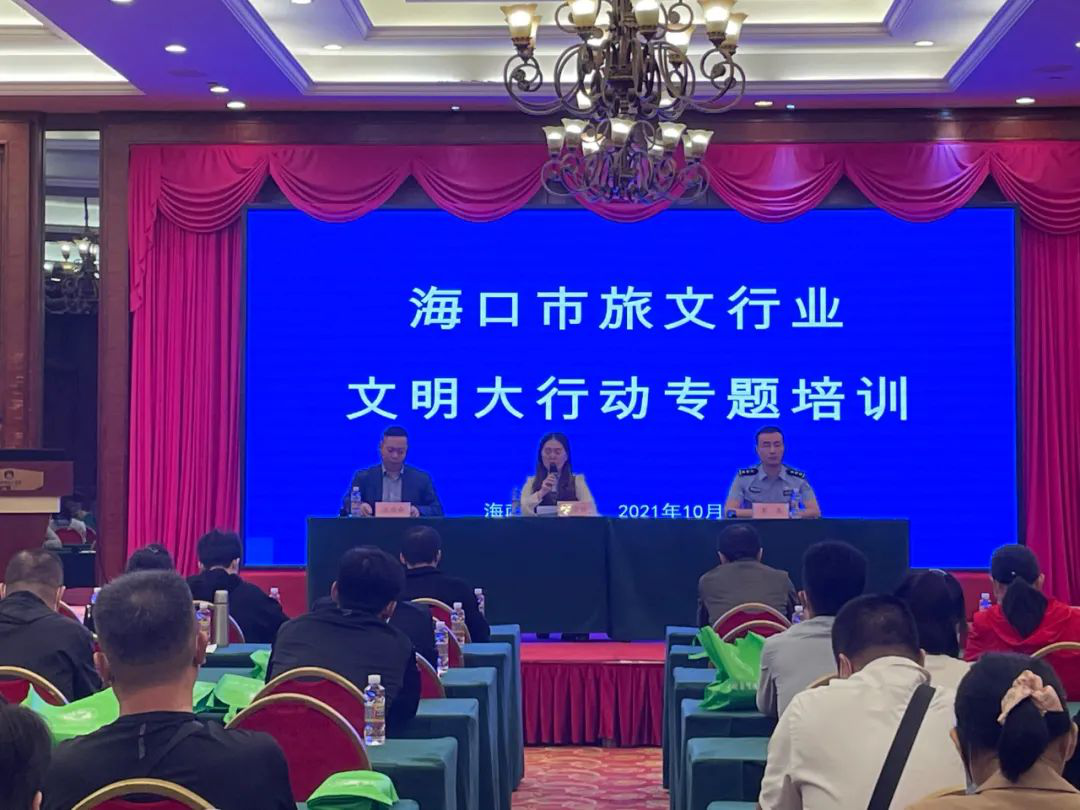 为进一步深化我市旅文行业精神文明建设,坚持以培育和践行社会主义核心价值观为主线,大力倡导文明旅游理念,扎实推进海口市旅文行业扫黑除恶、新一轮禁毒大会战、垃圾分类及禁塑工作,10月28日,由海口市旅游和文化广电体育局组织的海口市旅文行业文明旅游大行动专题培训班在海南凯威大酒店召开。海口市旅文局市场监管科相关工作人员、各区旅文局、局属各单位、海口市各行业协会及旅游企业、网吧、KTV歌舞娱乐场所相关工作负责人共250余人参加了培训。