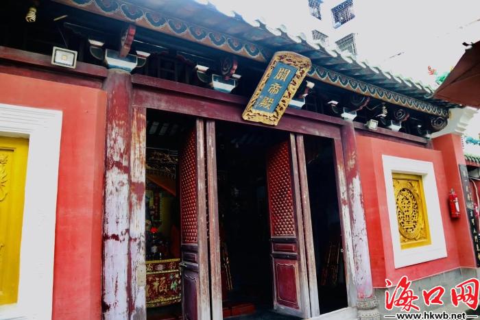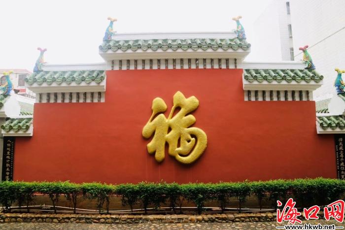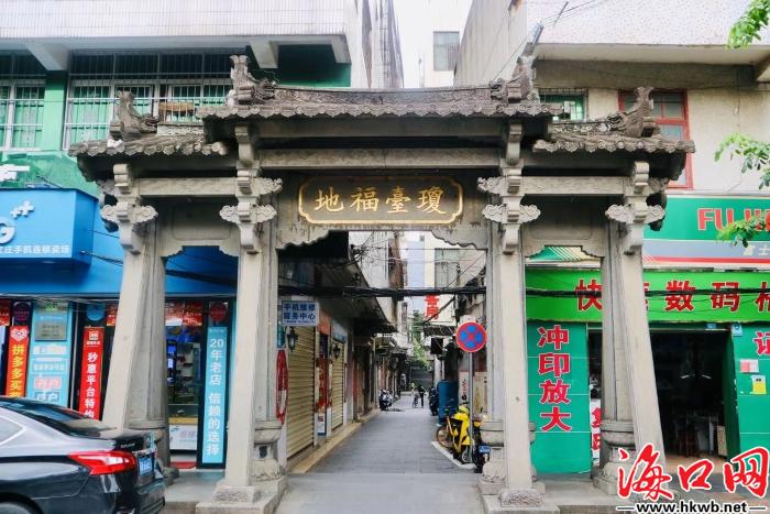 顺着文庄路走到关帝巷,可见巷口矗立着一座仿明代石牌坊,四柱三间,悬山顶上饰有鲤鱼鸱尾,正背面题刻有“琼台福地”四字。穿过牌坊,走进充满生活气息的关帝巷,便能看见几十级古老青石台阶上的福地轩,红墙绿瓦,颇具古韵,屋檐上精美的木雕经过了历史的洗涤依然动人。