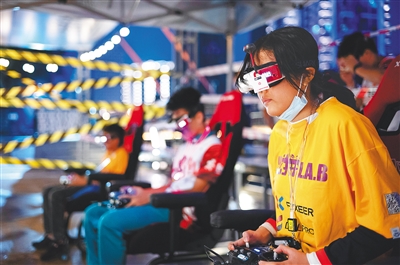 本次赛事设计了全国首个“海上赛道”,采取“夜战”模式。大赛竞赛项目为穿越机赛道竞速赛,选手通过佩戴FPV飞行眼镜或显示屏,使用无线电遥控设备操纵飞行器,按规定路线顺序穿越赛道障碍,在规定时间内完成赛道指定圈数。文/本报记者 昂颖 图/本报记者 宋国强