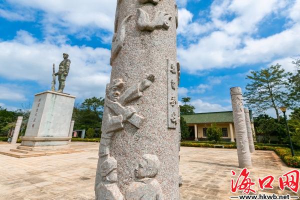 在铜像的四周,立着8根圆柱浮雕,浮雕上记录了琼崖纵队在艰苦的环境下坚持革命的历程,画面整洁、场景生动,细细观赏之下,人物细腻、线条流畅,艺术效果甚佳。母瑞山革命根据地创立、红色娘子军、潭口阻击战、围攻那大战斗……旧址内通过13幅石刻,生动形象展示琼崖纵队重要战绩,笔者通过阅览,对琼崖纵队战事有了更加深刻的了解。