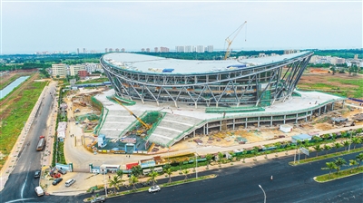目前,该项目顶部施工已接近尾声,预计今年12月底竣工交付。据了解,五源河文体中心由“一场八馆”组成,目前“一场”——体育场已建成投入使用,“八馆”——体育馆、游泳馆、网球馆、展览馆、音乐厅、博物馆、图书馆、科技馆正在规划建设中。二期项目建设内容包括体育馆、游泳馆和网球馆。本报记者 张茂 摄