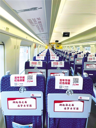 这趟“红色列车”通过广播、电视、海报、头枕巾、展板、窗花等多种形式和载体,让乘客了解中国共产党领导海南人民坚持革命斗争的光辉历程,展现中国共产党人的初心使命和责任担当。