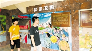 ▶海口市秀英区苍英村红色历史展馆外展出的爱国军人奋力抵抗侵琼日军绘画作品。 本报记者 石中华 摄