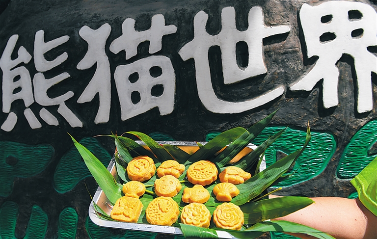 据悉,熊猫兄弟俩的特制月饼在材料比例方面有严格规定,用黄豆粉、玉米粉、鸡蛋、植物油、糖、盐等材料制作而成。