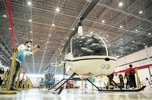 ③12月10日,在海南国际旅游装备博览会上展出的直升飞机。