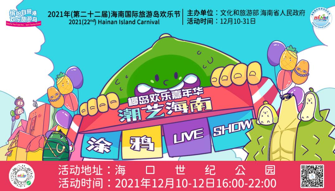一年一度的海南岛年度欢乐盛宴——2021年(第二十二届)海南国际旅游岛欢乐节,将于12月10日欢乐来袭。今年欢乐节,如何乐得更潮更有范?据悉,为更好地丰富市民游客欢乐体验,欢乐节组委会在今年开幕式系列活动中首次引入涂鸦Live show 新兴艺术展示形式,以“万众互娱,乐涂海南”为主题,特邀国内知名涂鸦艺术家现场创作,将于12月10日-12日16:00-22:00期间在海口世纪公园震撼亮相。