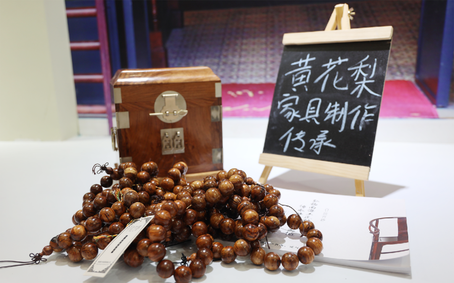 海南黄花梨被称为世界一绝,因海南黄花梨的树木生长及其缓慢、并且色彩鲜艳、香气怡人、纹理清晰、木质坚硬,名贵天成。海口市的龙塘镇、龙泉镇等地至今仍活跃着一批优秀工匠。这些地方的艺人代代承传,件件黄花梨木家具精品相继诞生。现场展示的黄花梨木精品,引起人们争先观看。