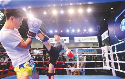 12月3日,2021首届中国(海南)体育用品和装备进口博览会在海南国际会展中心开幕。 图为拳击赛表演。本组图片均由本报记者 张茂 摄