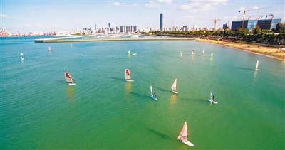 市民游客在海口西海岸开展帆船、游艇游活动。 袁才 供图