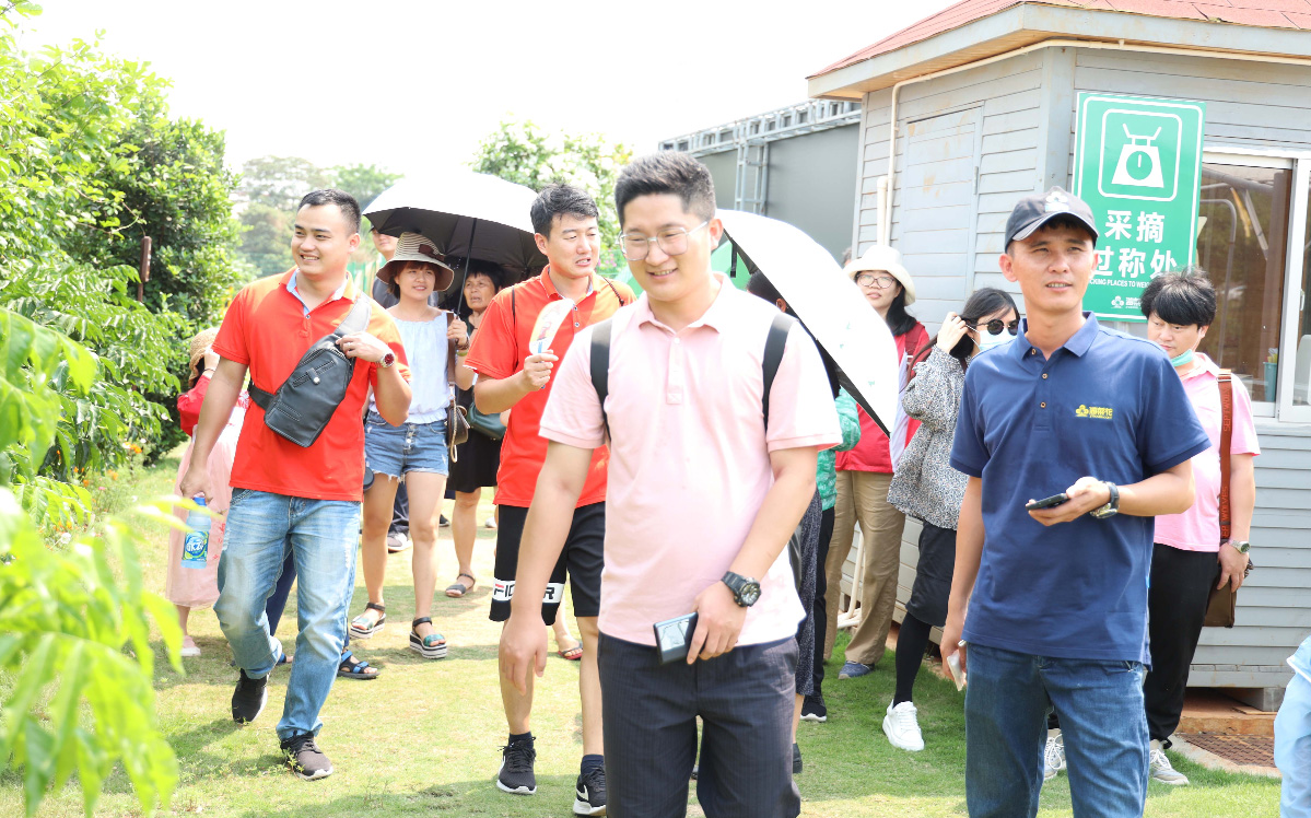 据基地工作人员介绍,田洋新坡采摘基地紧邻南渡江新坡段,占地600多亩,村民通过改造原有的废弃大棚,变废为宝,发展绿色休闲农业,辐射带动周边村庄经济发展、村民就业,是开展乡村游亲子互动的好去处。