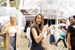 ③海口借国际性品牌活动不断提升“能见度”。图为世界小姐巡游冯小刚电影公社。