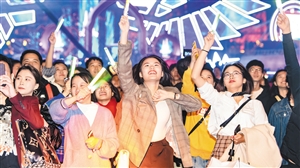 ⑤海口通过文旅融合增强竞争力。图为市民游客在跨年狂欢季活动现场互动。