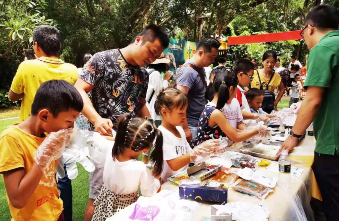 9月13日,海南热带野生动植物园举办“爱在海野 情系中秋”系列活动,为游客朋友们奉上丰盛精彩的节日“大餐”。当天,买票入园的游客可以免费报名参加“中秋小小饲养员”的活动,并亲手给动物们投喂动物月饼。游客、市民可与动物们亲密接触,还可以和动物卡通玩偶一起玩游戏赢奖品。体验冰皮月饼制作,在动手的过程中享受天马行空创作的乐趣。