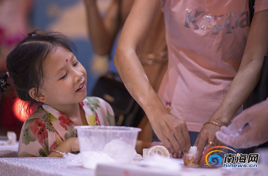 一位小朋友与家人参与“匠心品月”月饼制作。海报集团全媒体中心记者 宋国强 摄