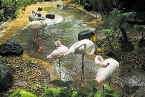 据悉,海南热带野生动植物园内自然放养了100多种、2000余只(头)国内外珍稀野生动物。园内根据不同动物种类的习惯特性来制定实施对应的解暑方案。例如,猛兽类的东北虎、熊、狮子等,均配有淋浴、泳池;而草食类动物中的大象、长颈鹿、河马等,除了遮阴篷、水池之外,额外进行投喂水果(以西瓜为主)解暑;禽类中的火烈鸟、秃鹫、鹰等,主要靠乔木、灌木丛遮阴以及水池避暑;工作人员还为国宝大熊猫贡贡和舜舜准备了冰竹笋、苹果、胡萝卜等。