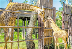 ▲刚满月的长颈鹿宝宝和长颈鹿妈妈。