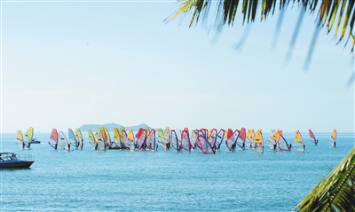 三亚湾上扬帆起航。武昊 摄