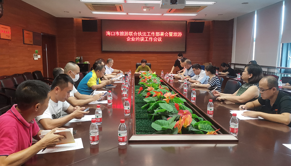 9月27日下午,市旅文局、市综合行政执法局召开旅游联合执法工作部署会暨旅游企业约谈工作会议。会议由市综合执法局宋佐副局长主持,研究部署中秋国庆假日期间海口旅游市场的监管、行政执法、信息报送等工作。会议决定从各区旅文局和综合执法局抽调21名精兵强将、业务能手组建2020年中秋国庆假期海口旅游市场综合整治检查工作领导小组,印发《关于开展 2020 年中秋国庆假期海口旅游市场综合整治检查的工作方案》,在假日期间严厉打击各类非法扰乱旅游市场行为,排查安全隐患,营造风清气正、安全稳定的旅游市场环境。市市政管理局(市综合行政执法局)、市旅文局、市旅游和质量监督管理所、秀英区综合执法局、龙华区综合执法局、琼山区综合执法局,美兰区综合执法局;秀英区旅文局、美兰区旅文局参加了部署会。