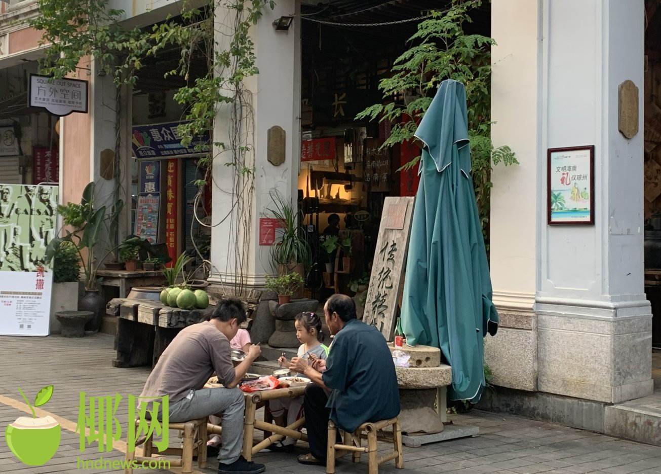 在骑楼老街里,可以看到老街居住的传统模式里遗留了众多极为有趣的邻里空间,如露天戏台和社区活动空间合二为一的宗庙空间;室外随处可见的土地爷祭拜点,常年有人供奉;较大的室内茶室,多为老年人交谈聊天,消磨寂寞时光所用,茶室内人声鼎沸,俗称“老爸茶”等等。这些具有传统文化气息的活动,也可以让外来游客实实在在的感受海南文化。
